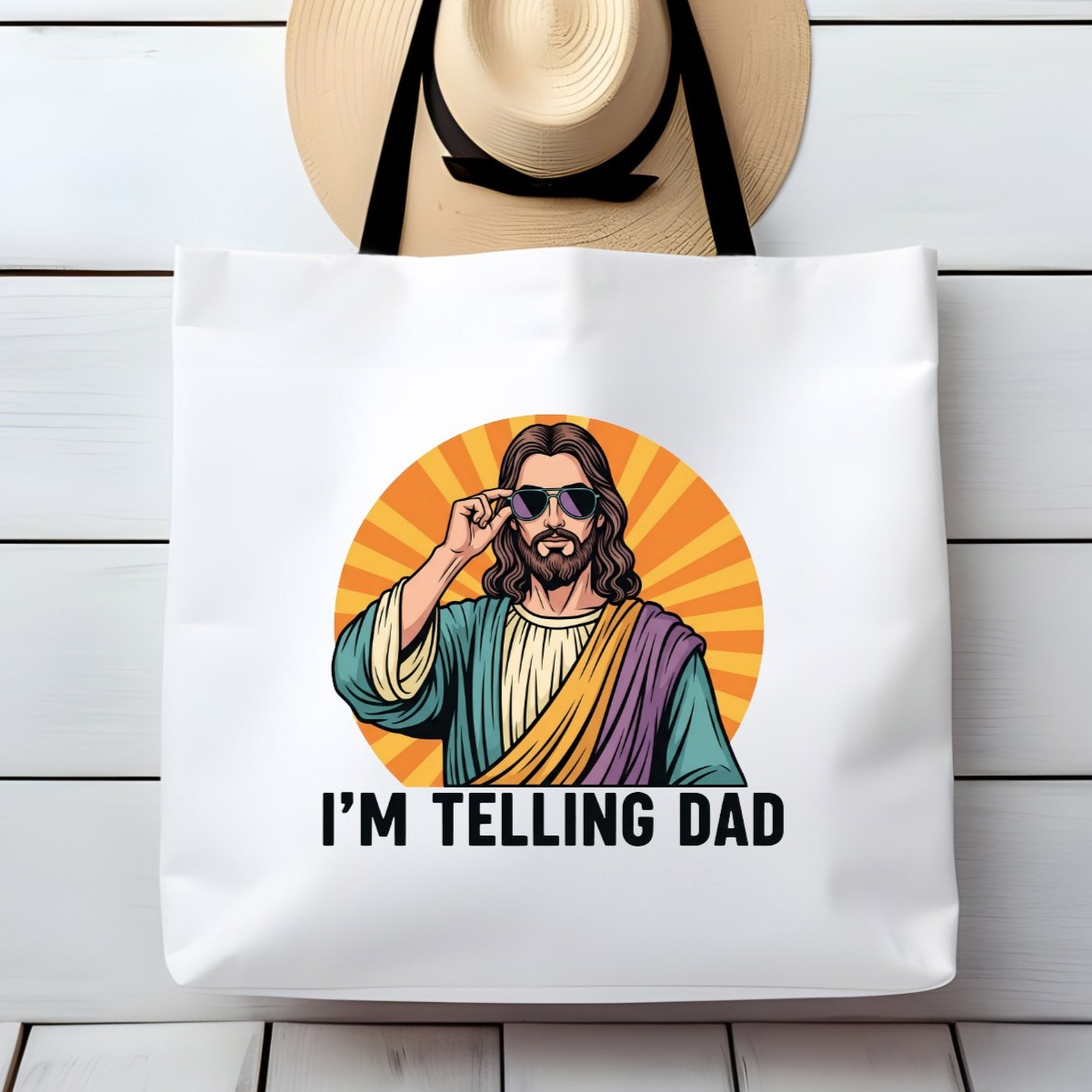 Jesus I'm Telling Dad Sarcastic Funny Large Tote Bag