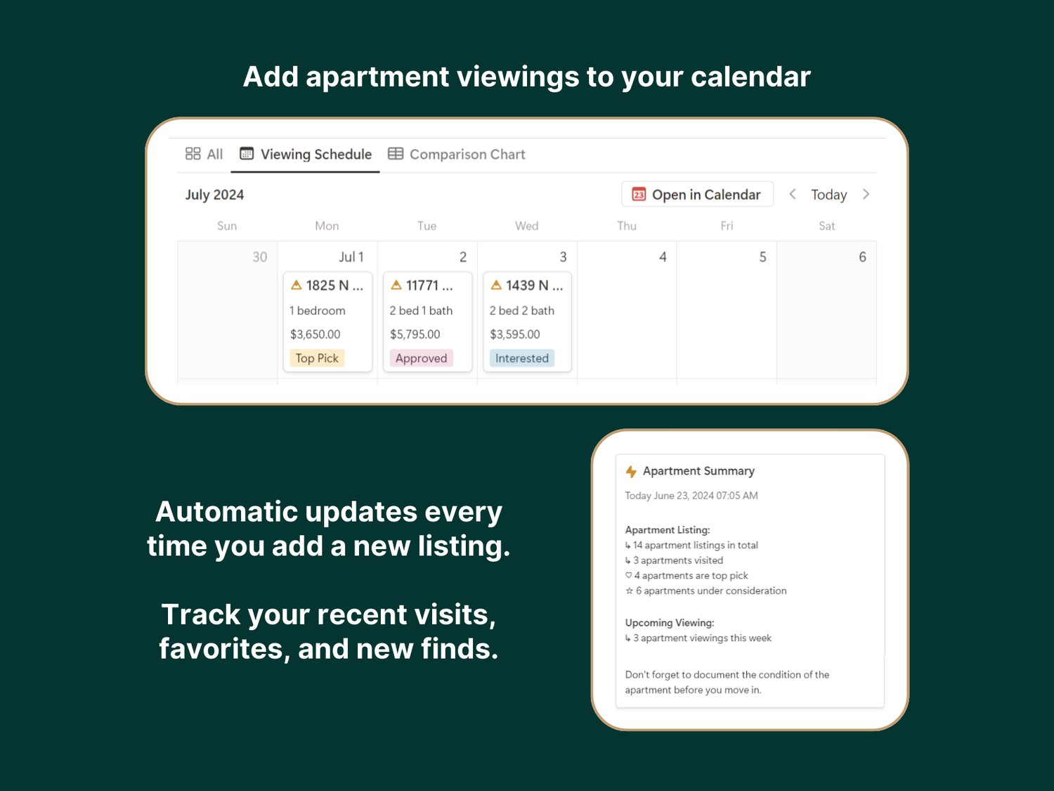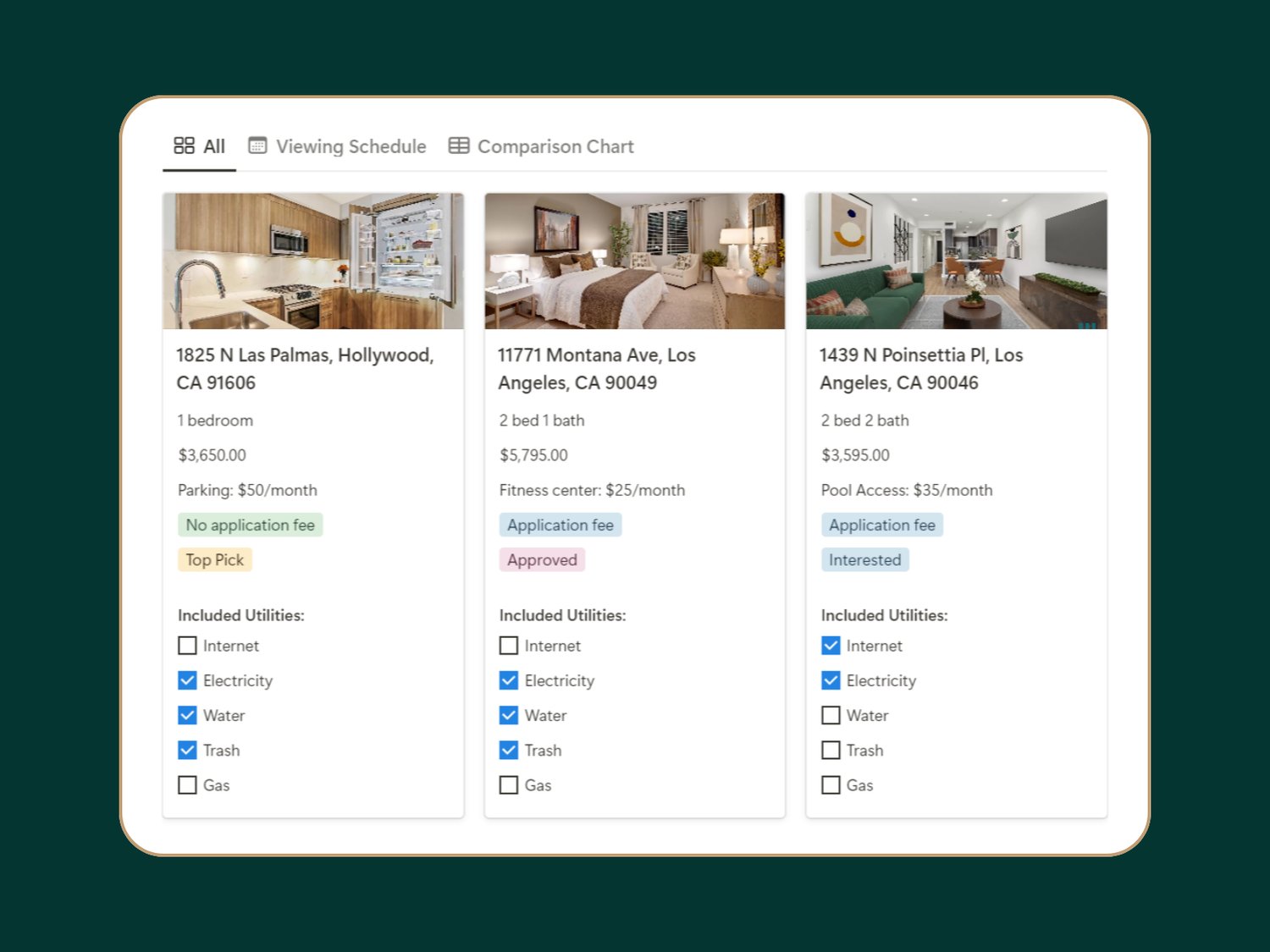 - Compare Apartments: Save key details from listings and easily compare them side-by-side.