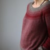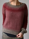 Free Solo is a topdown sweater with a circular yoke, decorated in gradient shades that fade in and out of each other. The effect looks complicated, but it’s really just a simple slip stitch pattern!