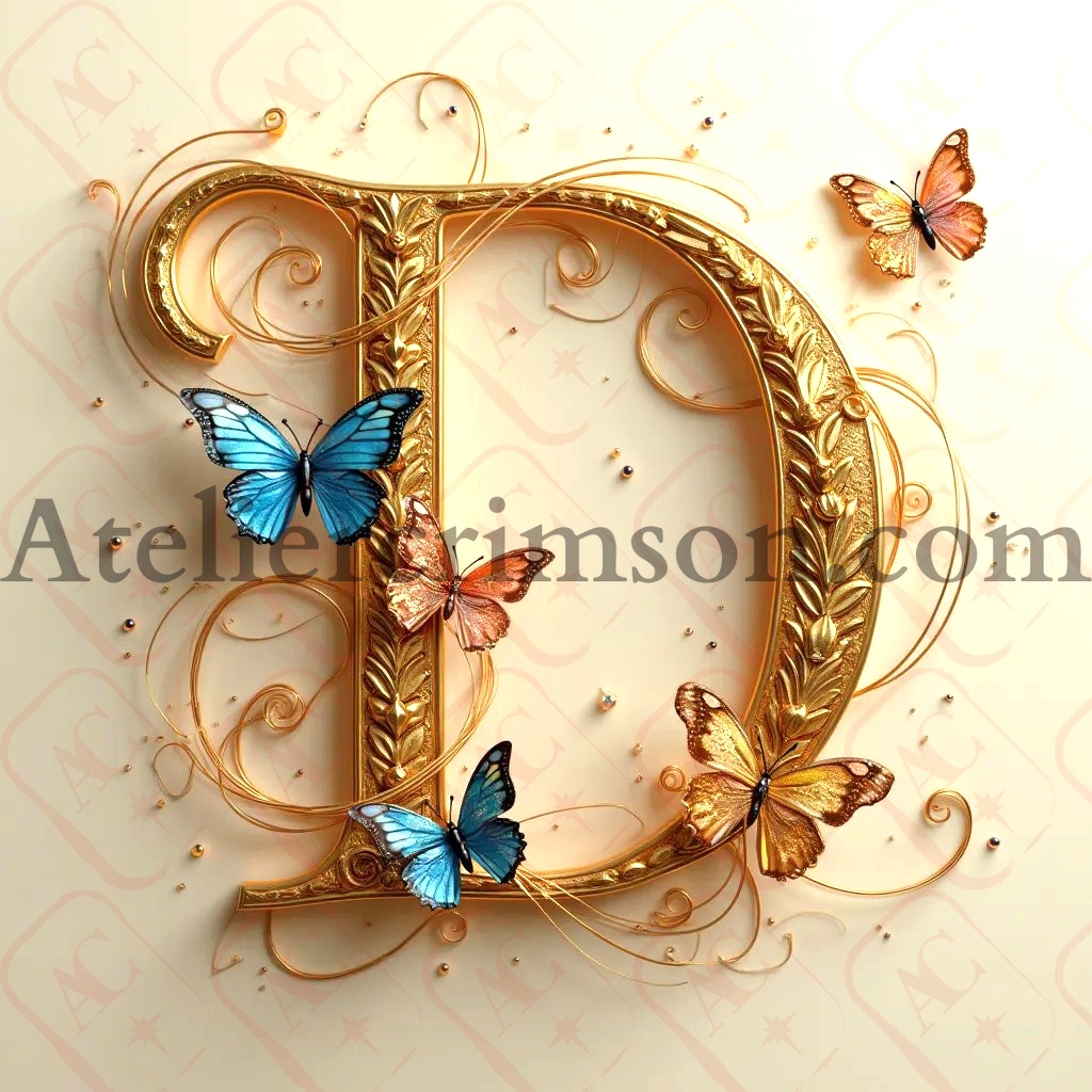 The letter D golden luxury butterfly .Download Now this high quality AI-generated image, perfect for adding a touch of luruxy and creativity to any space.