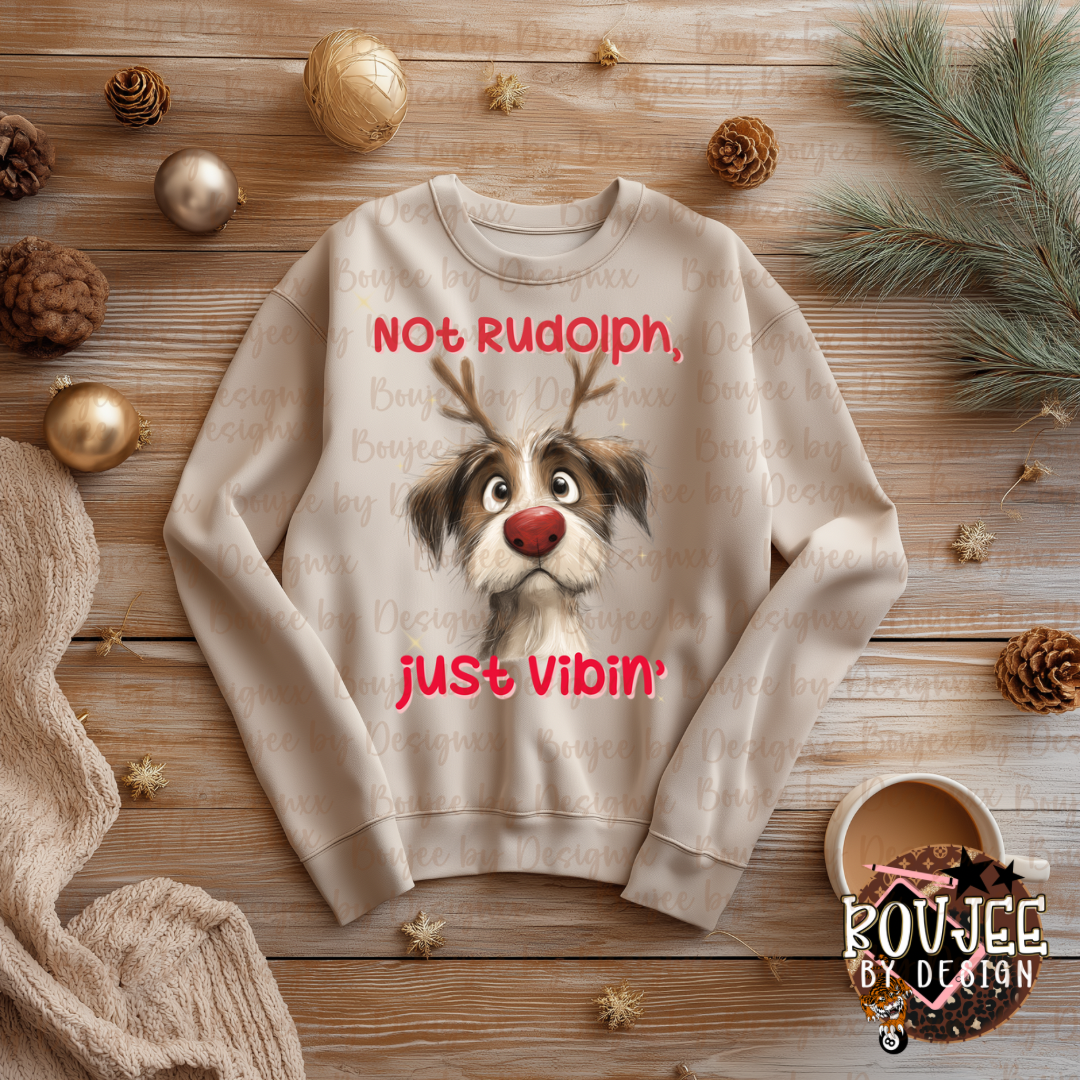 Not Rudolph Just Vibin’ | Funny Christmas Dog PNG | Boujee Reindeer Pup Design | Festive Holiday Sublimation Clipart