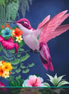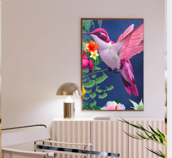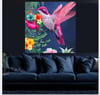 Vibrant Tropical Maximalist Bird Print Set - Dark Blue Hummingbirds & Hot Pink Peacock Jungle Print Set | Exotic Bird Print Set of 3