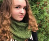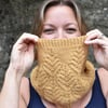 This cowl is worked in the round from the bottom up. It starts with a ribbing section made on a larger needle to give the cowl a more generous shape at the bottom. The pattern is then worked from the chart or written instructions. Towards the top of the cowl there are two rounds of decreases that shape the cowl, which is then finished with a ribbing section worked on the main needle to give a snug fit.