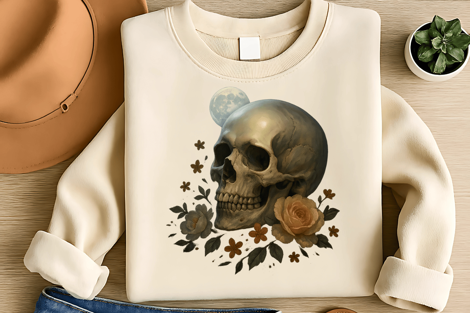 ✔️ Moonlit floral skull-themed clothing & accessories