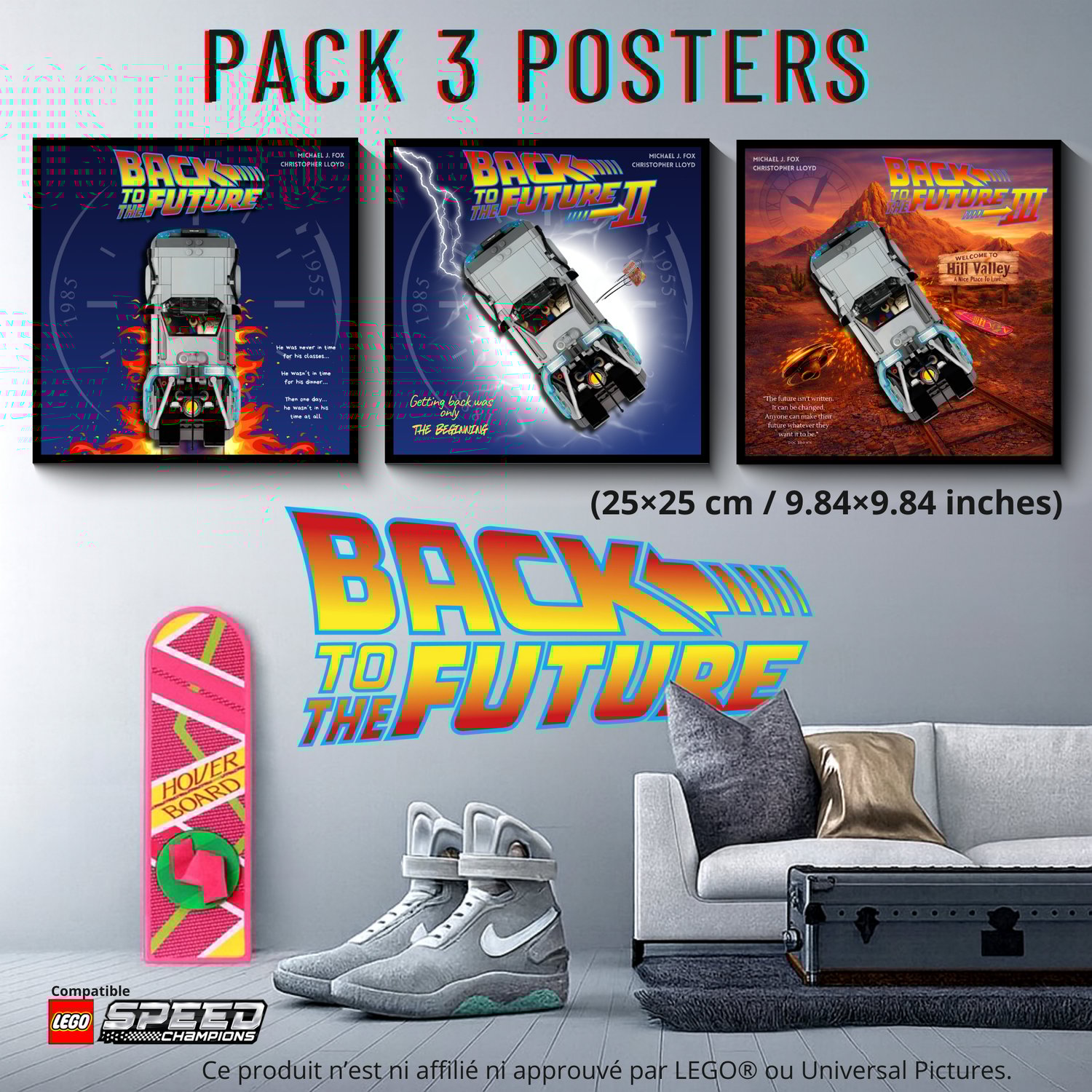 Back to the Future Trilogy – LEGO-compatible Display Poster Pack (3 Posters – 25×25 cm / 9.84×9.84 inches)