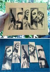 Do you want the face images of Christ on your bookmarks? Check out this marker set featuring black and white portraits of Jesus. These images were sourced from public domain websites, and the photographs were converted into one-bit images before being cropped to highlight the face. The set consists of two variations – with and without Bible passages.