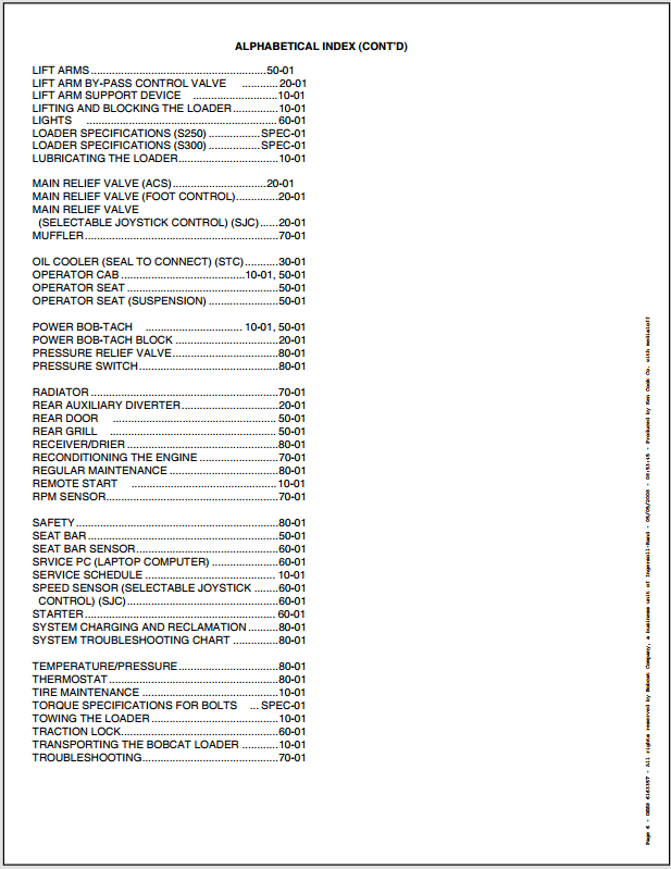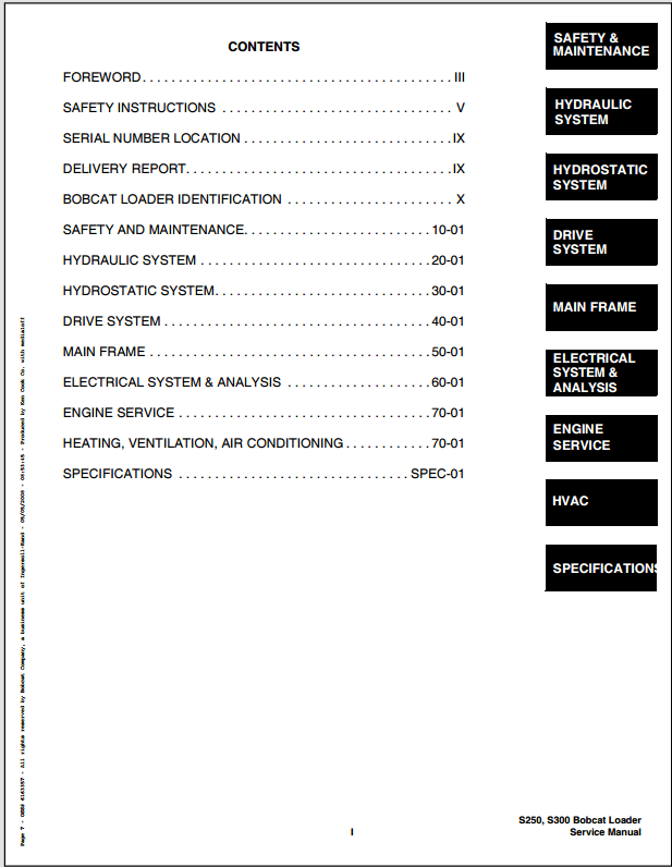 2006 Bobcat S250 Turbo S300 Turbo Includes High Flow Service Manual Part No. 6902711 (3-06)