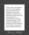 In my case, into art. I chose fiction. Could you not ask me why? Though I'm likely to lie - over rationalising.