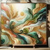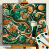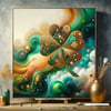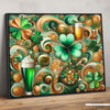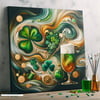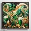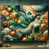 A vibrant fusion of swirling shamrocks, golden coins, and leaping leprechauns, all bathed in a mystical emerald glow. This abstract digital art piece captures the spirit of St. Patrick’s Day with dynamic energy, sparkling luck, and a touch of Irish magic.