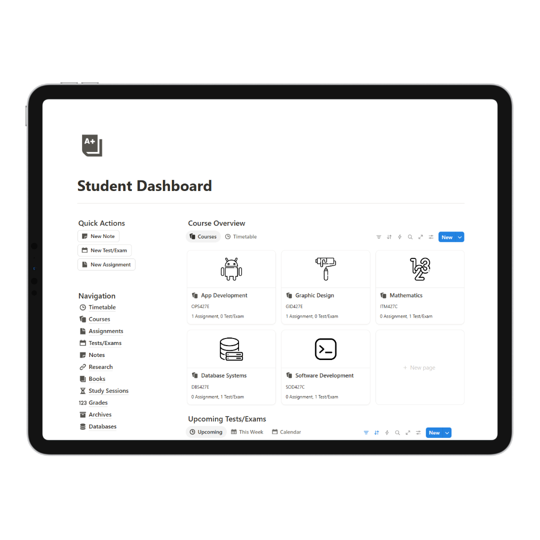 - Capture Everything: Easily log courses, assignments, test/exam dates, and even your research materials.