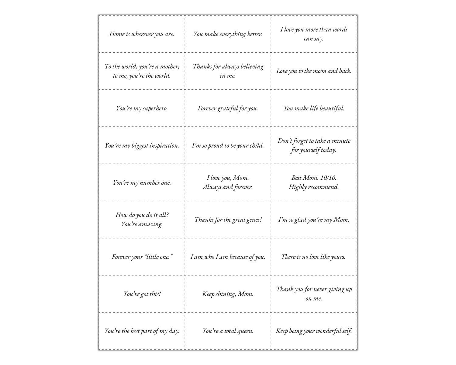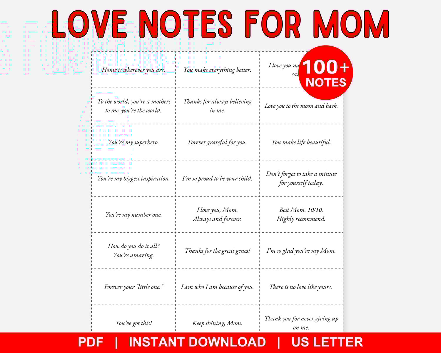 Mom deserves to know how important she is every single day. These Love Notes for Mom remind her that she is always on your mind and deeply appreciated. Use them for Mother’s Day, her birthday, or any other occasions to offer comfort and love exactly when she needs a boost.