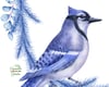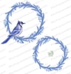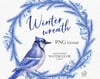 Blue Christmas: Xmas wreaths with blue jay. Winter decoration.
