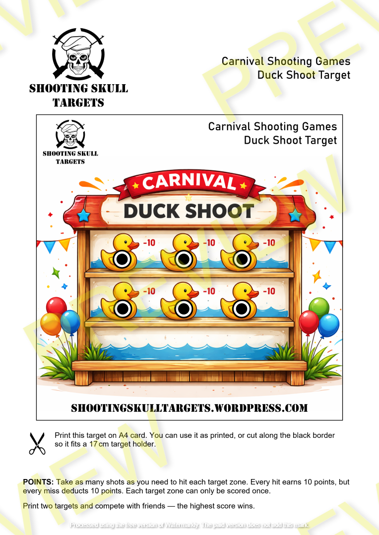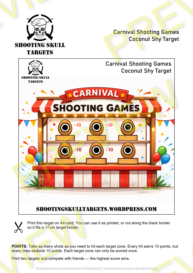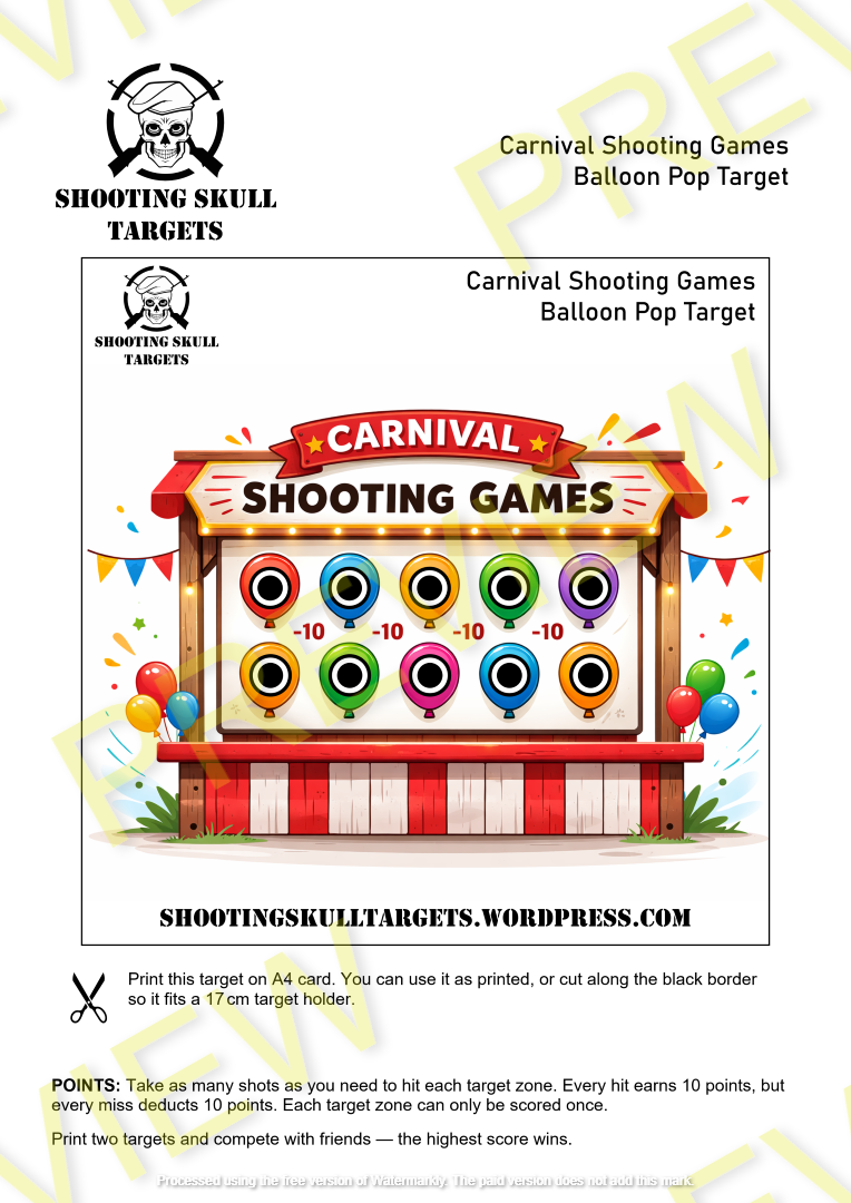 Bring the excitement of the fairground to your range with Shooting Skull Targets: Carnival Shooting Games, a professionally designed collection of printable airgun targets inspired by classic carnival shooting booths.