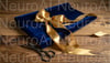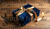 Elegant blue gift wrapped with golden ribbon
