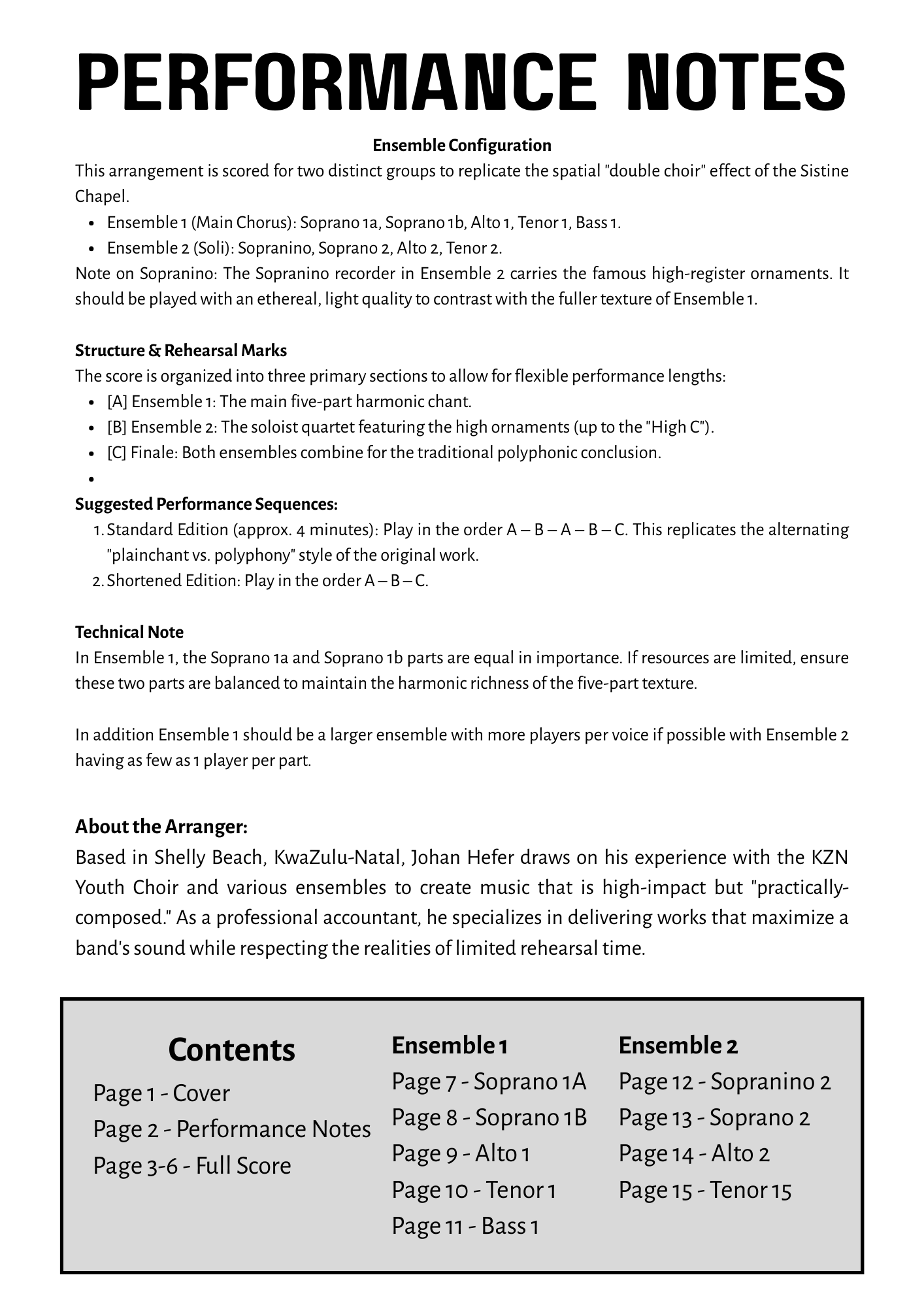 - Authentic "Double Choir" Feel: The piece is split into two distinct groups (Ensemble 1 and Ensemble 2) to allow for the traditional antiphonal (call-and-response) performance.