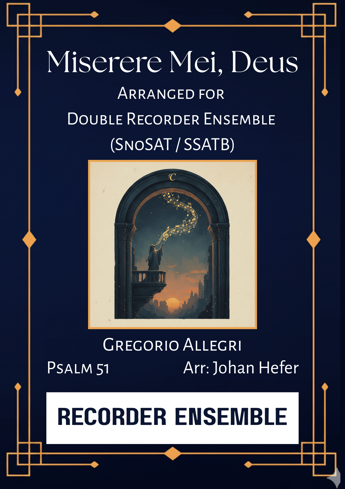 Experience the ethereal beauty of the Vatican’s most "forbidden" masterpiece. Gregorio Allegri’s Miserere was famously guarded by the Sistine Chapel for centuries, with its score hidden from the world until a young Mozart transcribed it by ear. This arrangement brings that same haunting, spatial polyphony to the recorder ensemble, meticulously crafted to preserve the original’s atmospheric power.