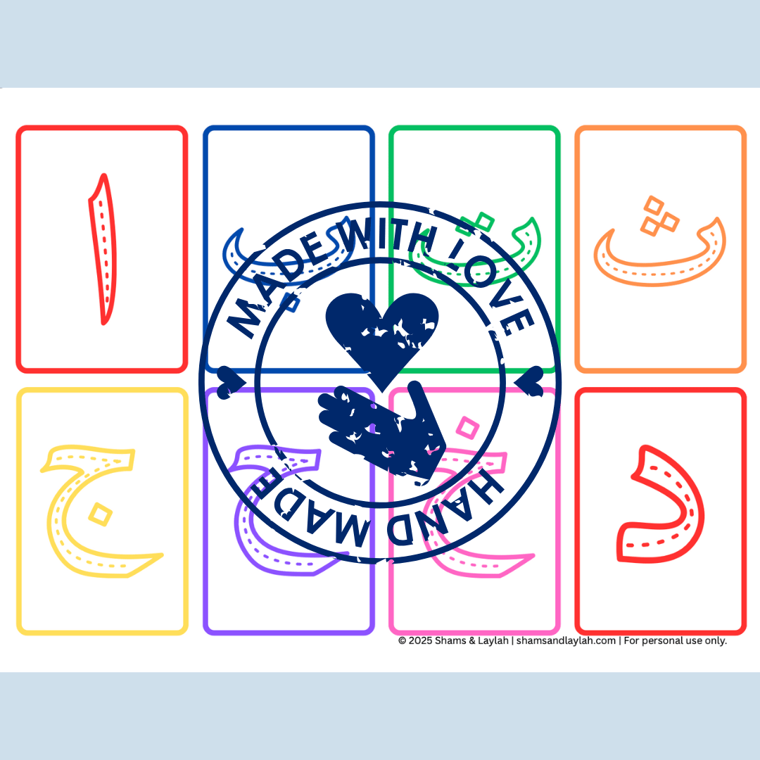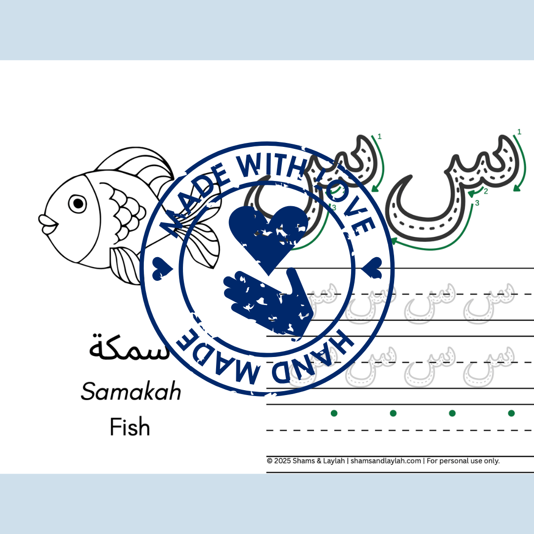 My First Arabic Tracing Workbook gently introduces children to each Arabic letter through fun tracing, recognition, and coloring activities. Designed with love by Shams & Laylah, this 34-page printable workbook helps kids build confidence in writing, while connecting learning to faith and joy.