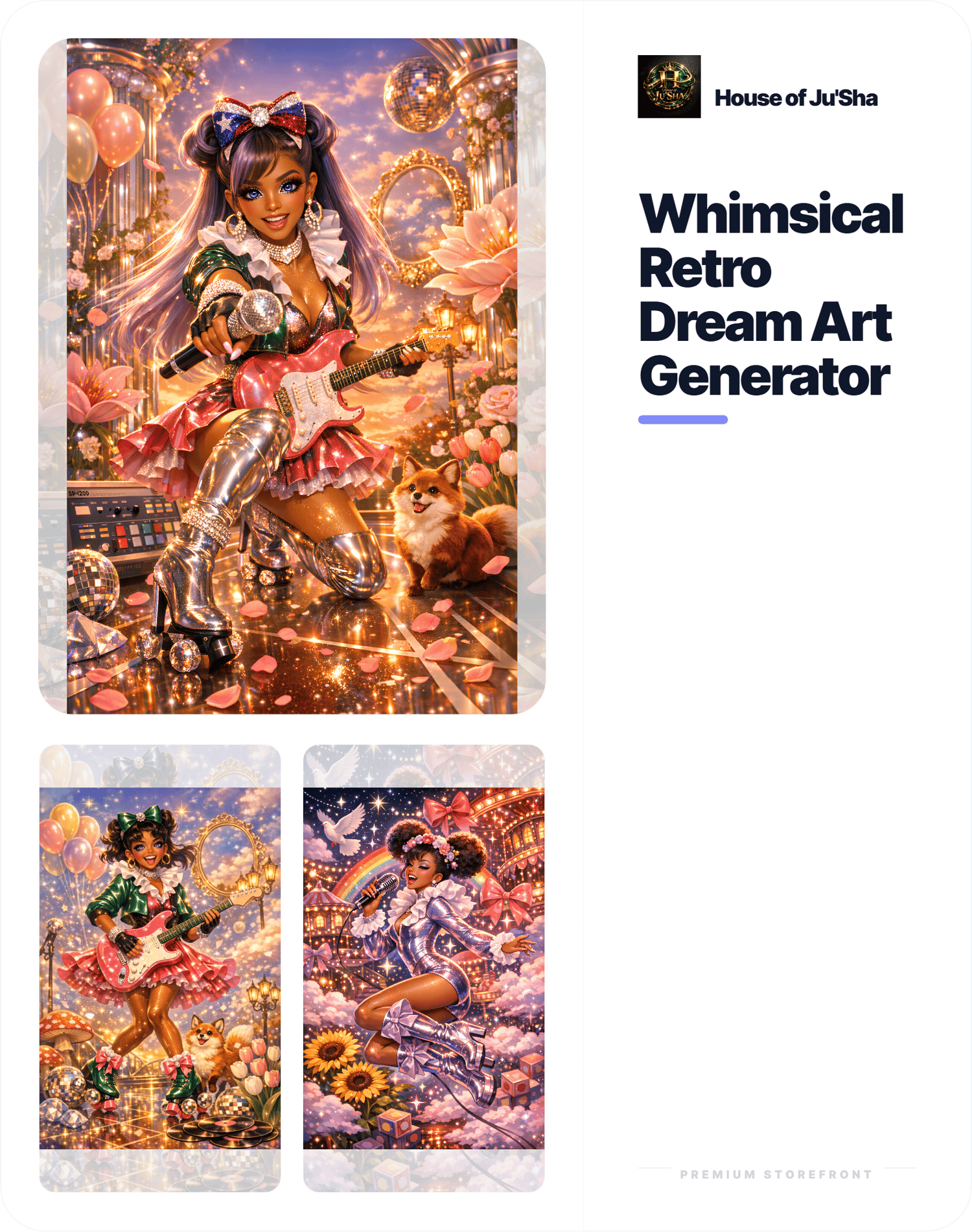 The Whimsical Retro Dream Art Generator is a powerful HTML-based tool that allows you to create high-end image prompts, cinematic video prompts, and music vibe prompts — all from one beautifully designed interface.