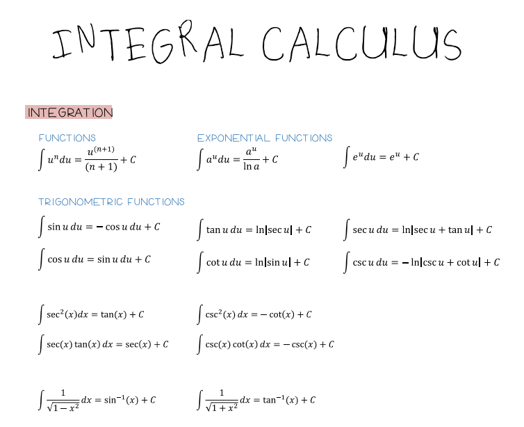 Mathematics - Integral Calculus Formula Sheet made Flashy 😉