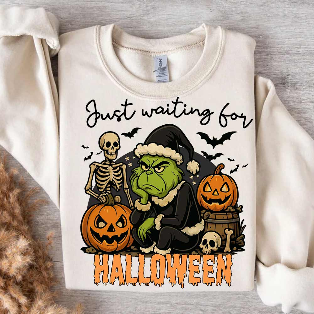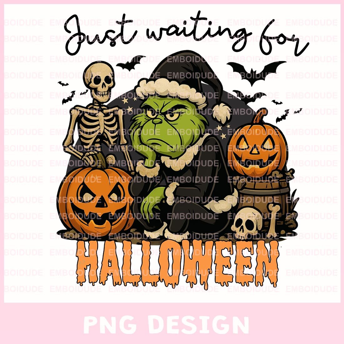 Grinch Just Waiting For Halloween Png Designs, Funny grinch Halloween Sublimation Png, Spooky Season Clip Art, Vintage Grinch Coffee Design, Digital Download