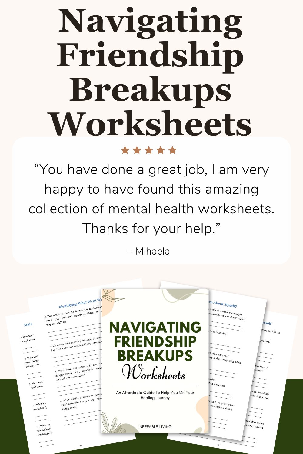 If so, Navigating Friendship Breakups Worksheets can help you process the loss, explore your emotions, and rebuild your sense of self and connection.