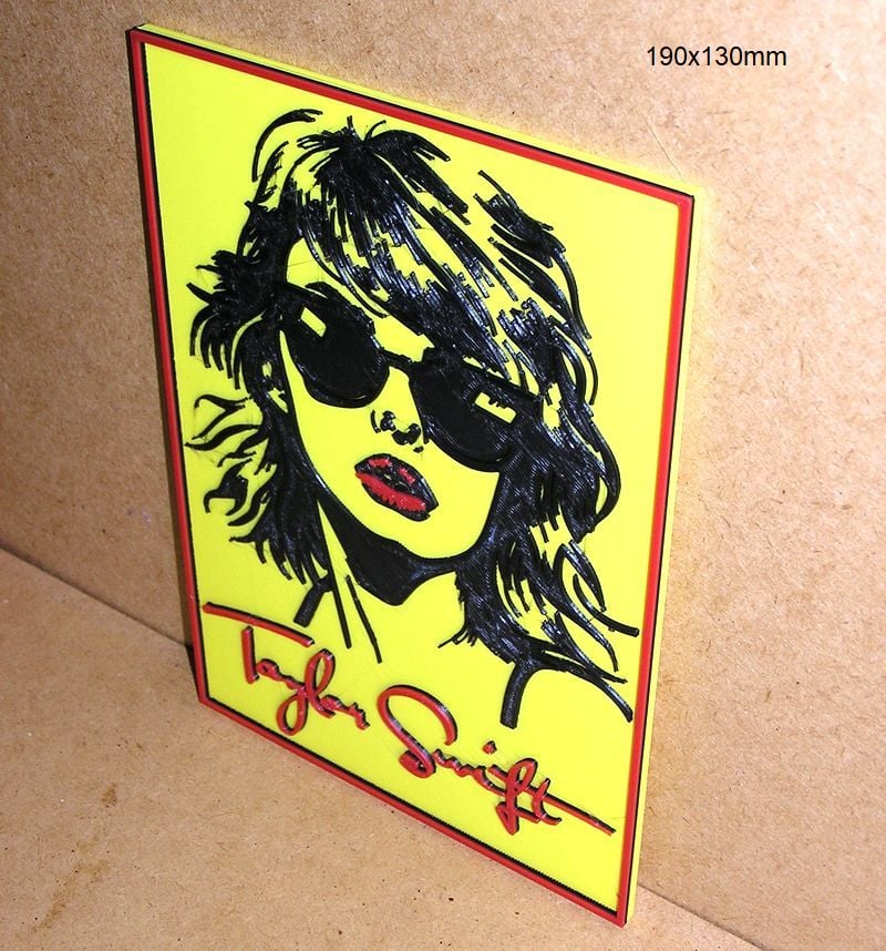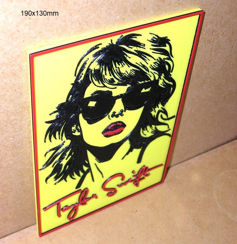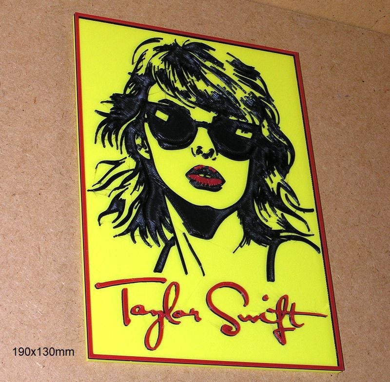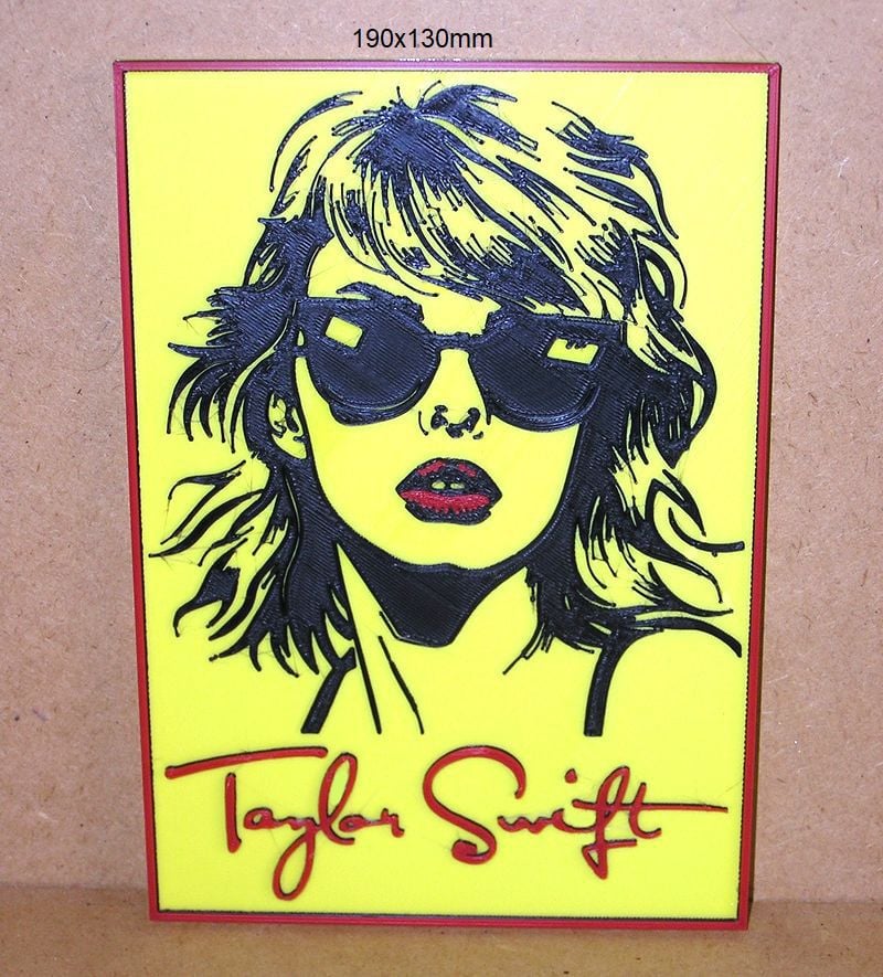 Taylor Swift, Poster with logo of a music group and singers, these STL and Gcode files have been created to be printed in various colors with any FDM type printer. The color changes have been made with the Elegoo Neptune 3 Pro printer, but they can be printed on any printer.