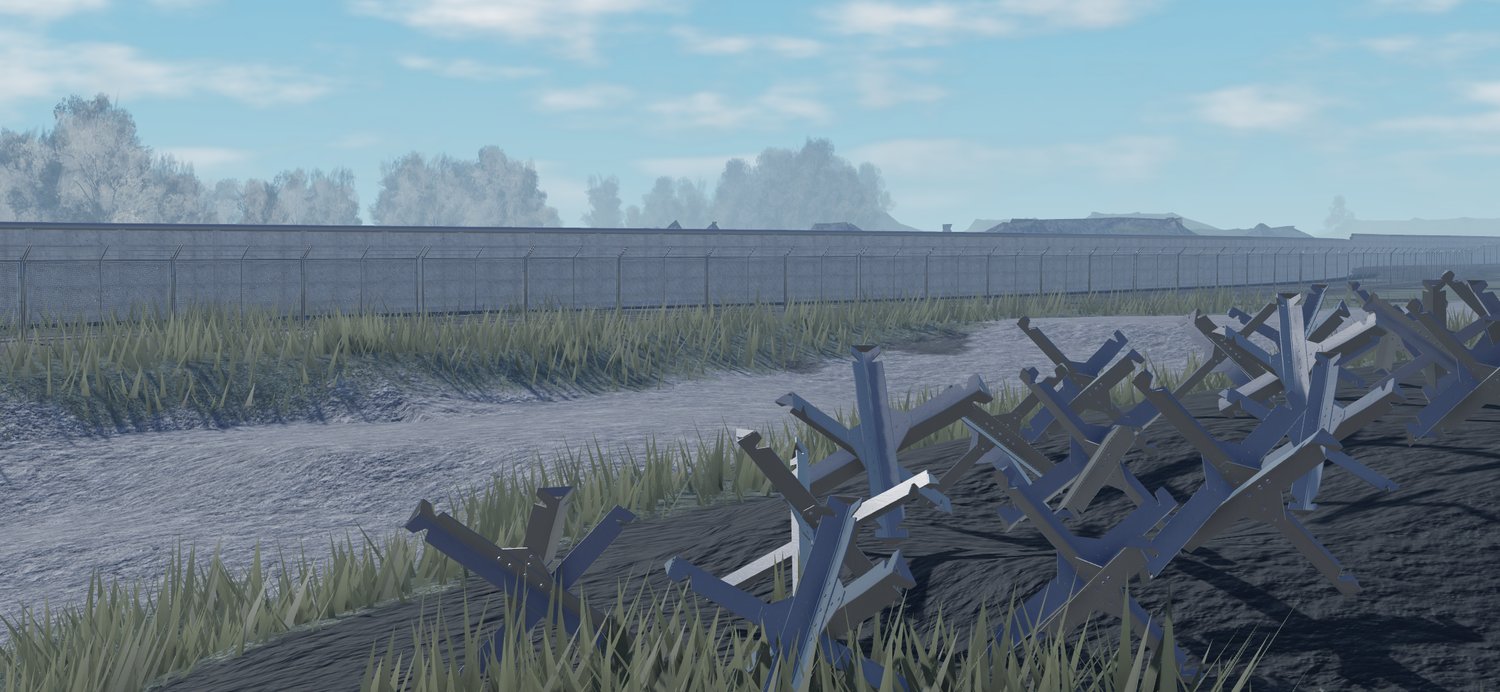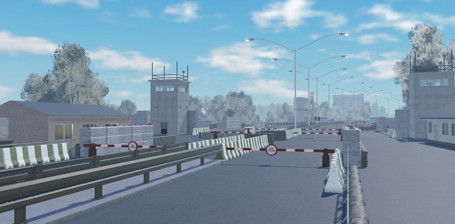 - 🏰 Cold War Atmosphere: Realistic 1970s-era checkpoint with concrete walls, guard towers, and fortified barriers.