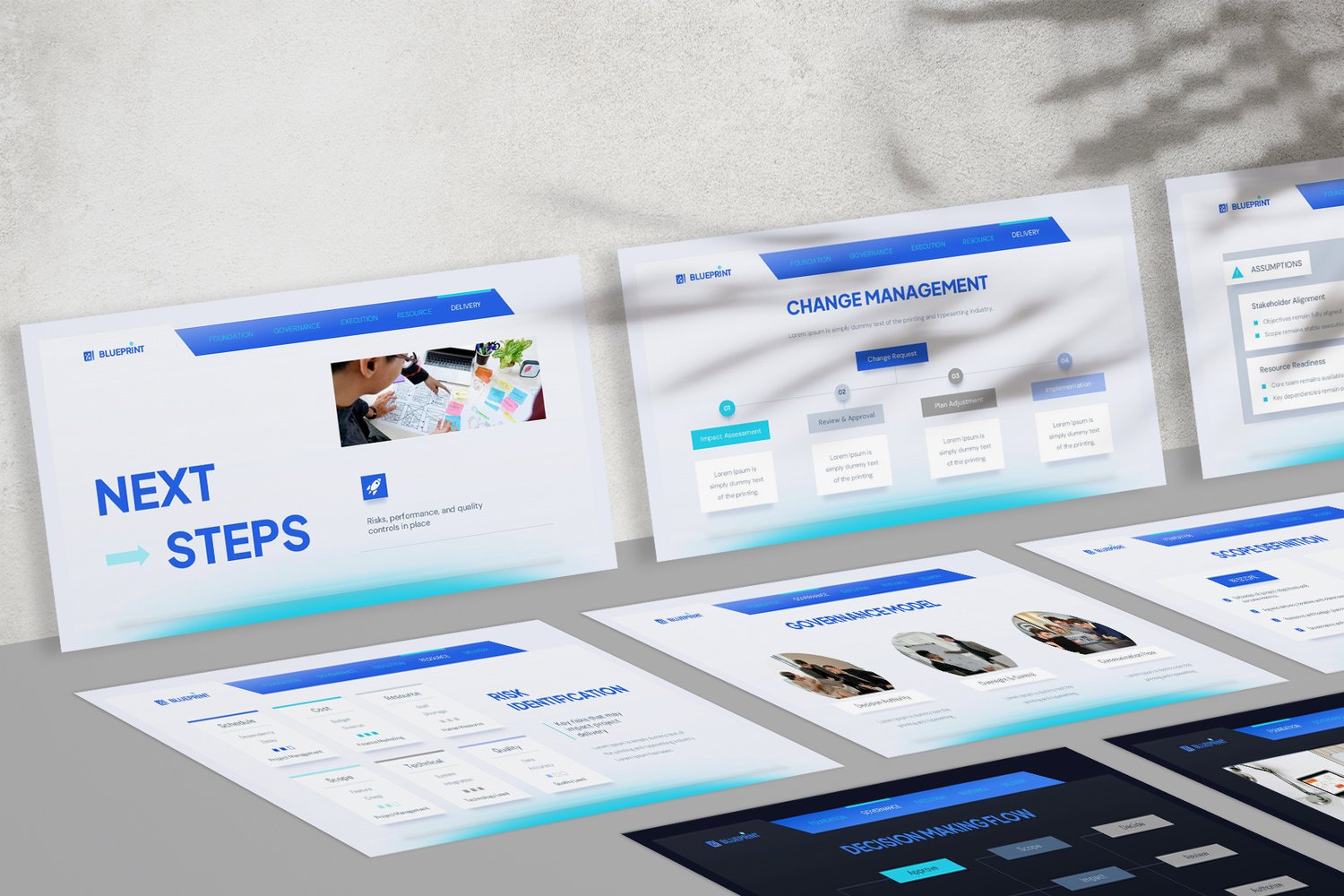 Blueprint is a structured Project Plan presentation template designed to manage projects from initiation to closure with clarity and control.