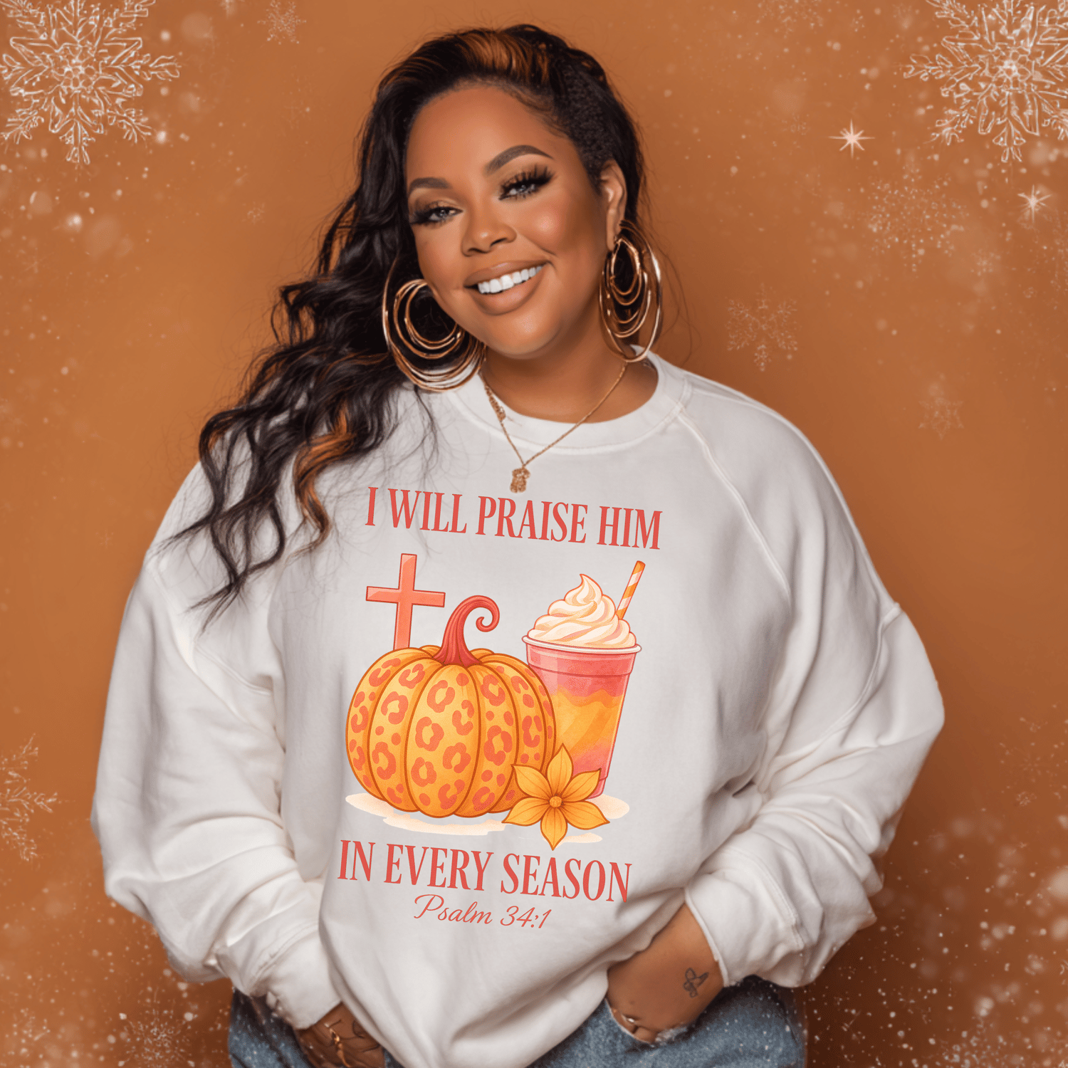 This “I Will Praise Him In Every Season – Psalm 34:1” PNG blends scripture, warmth, and a beautiful fall pumpkin aesthetic to create a meaningful, eye-catching design.