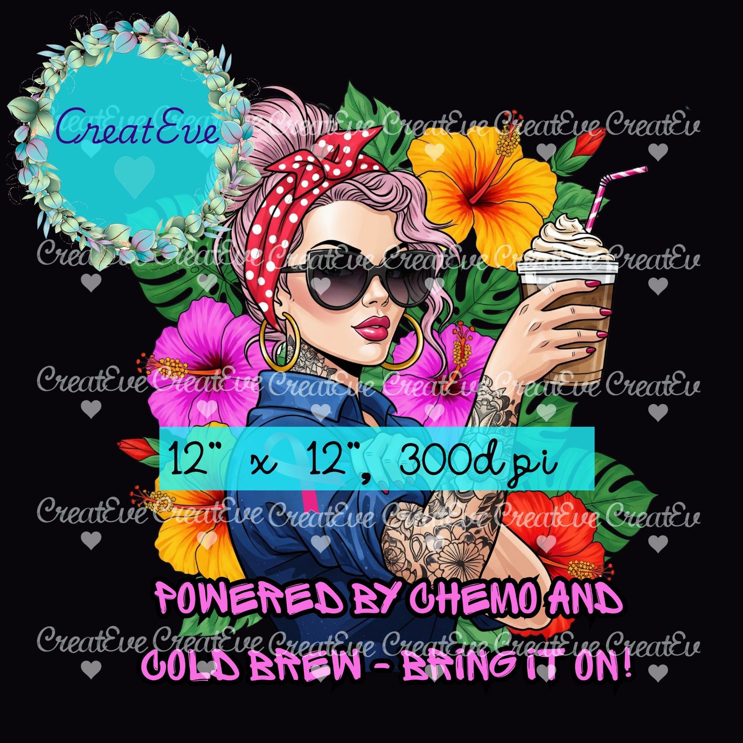 Snarky Bold Tattooed Woman Breast Cancer Chemo Support Shirt Sublimation PNG