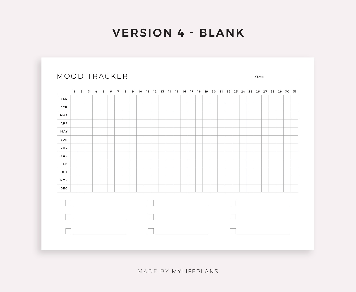 Mood Tracker Printable Landscape, A Year In Pixels, Mood Journal, A4/Letter