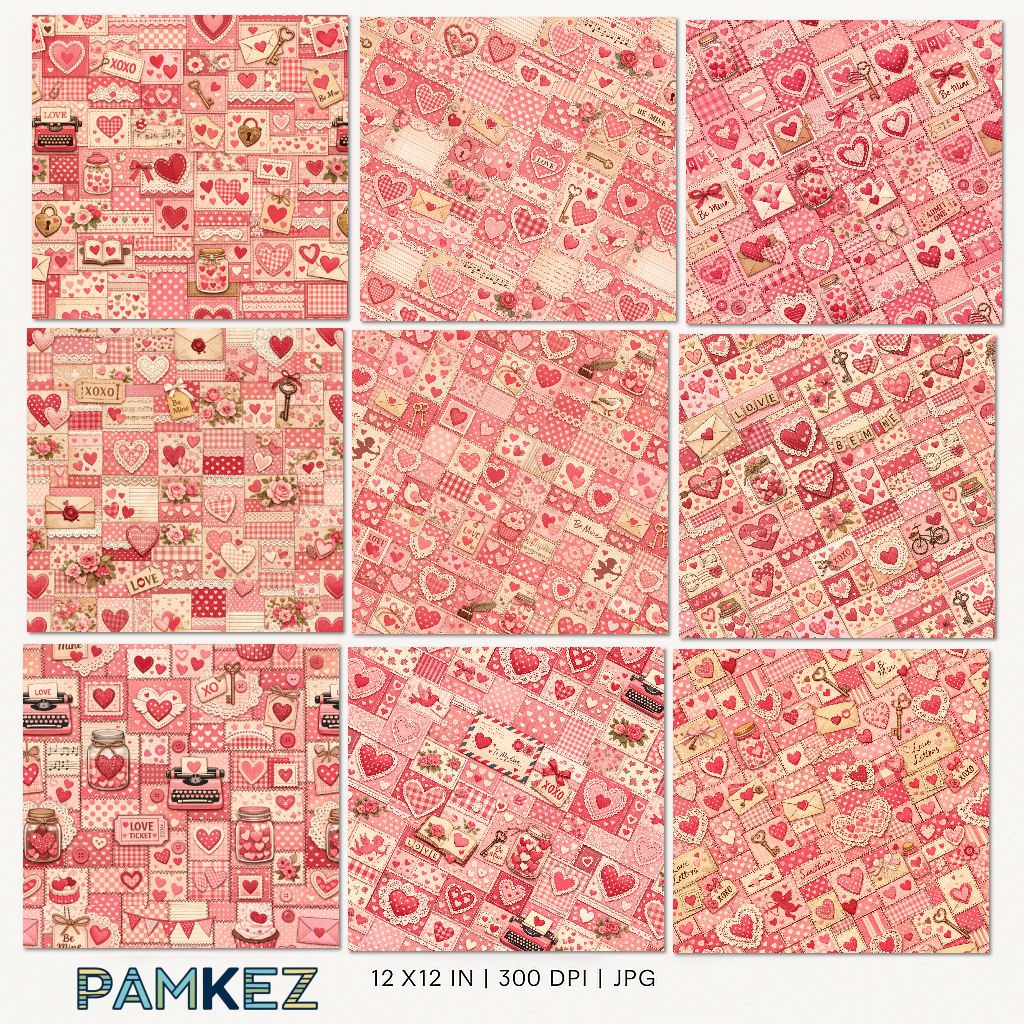 A cozy, handcrafted feel meets Valentine charm in this patchwork‑inspired paper pack. Each tile blends hearts, florals, and stitched textures for a warm, quilt‑like aesthetic.