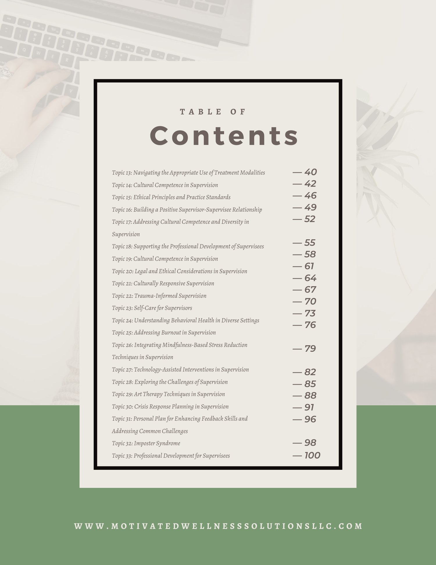 The Leading with Excellence: The Ultimate Supervision Curriculum for Mental Health Professionals is a digital product intended for educational purposes only. The information and resources provided in this curriculum are based on the expertise and experiences of the creators, and they do not replace professional advice, guidance, or legal opinions. The use of this curriculum is at your own discretion, and any actions or decisions you make based on the content are your responsibility.