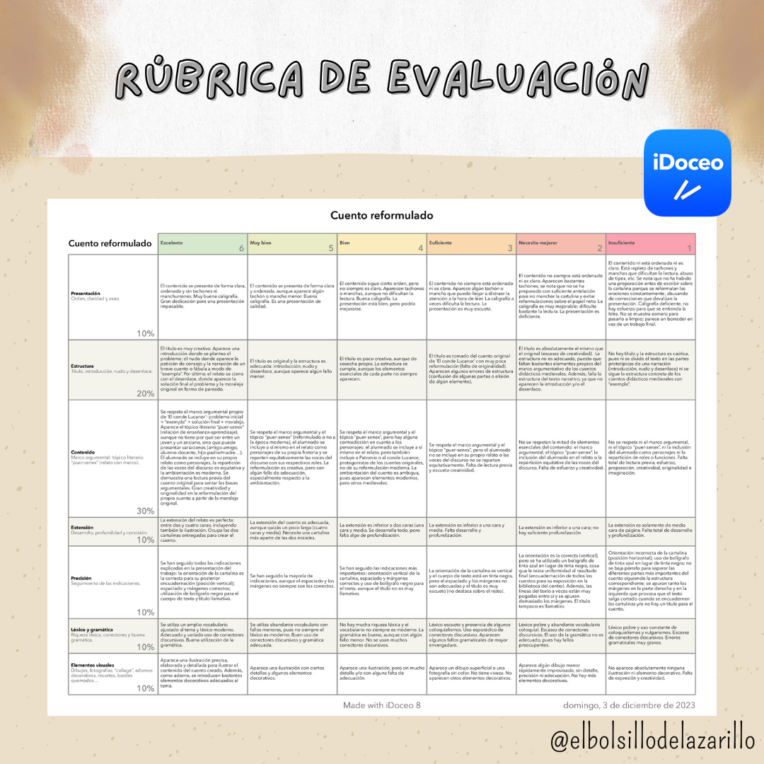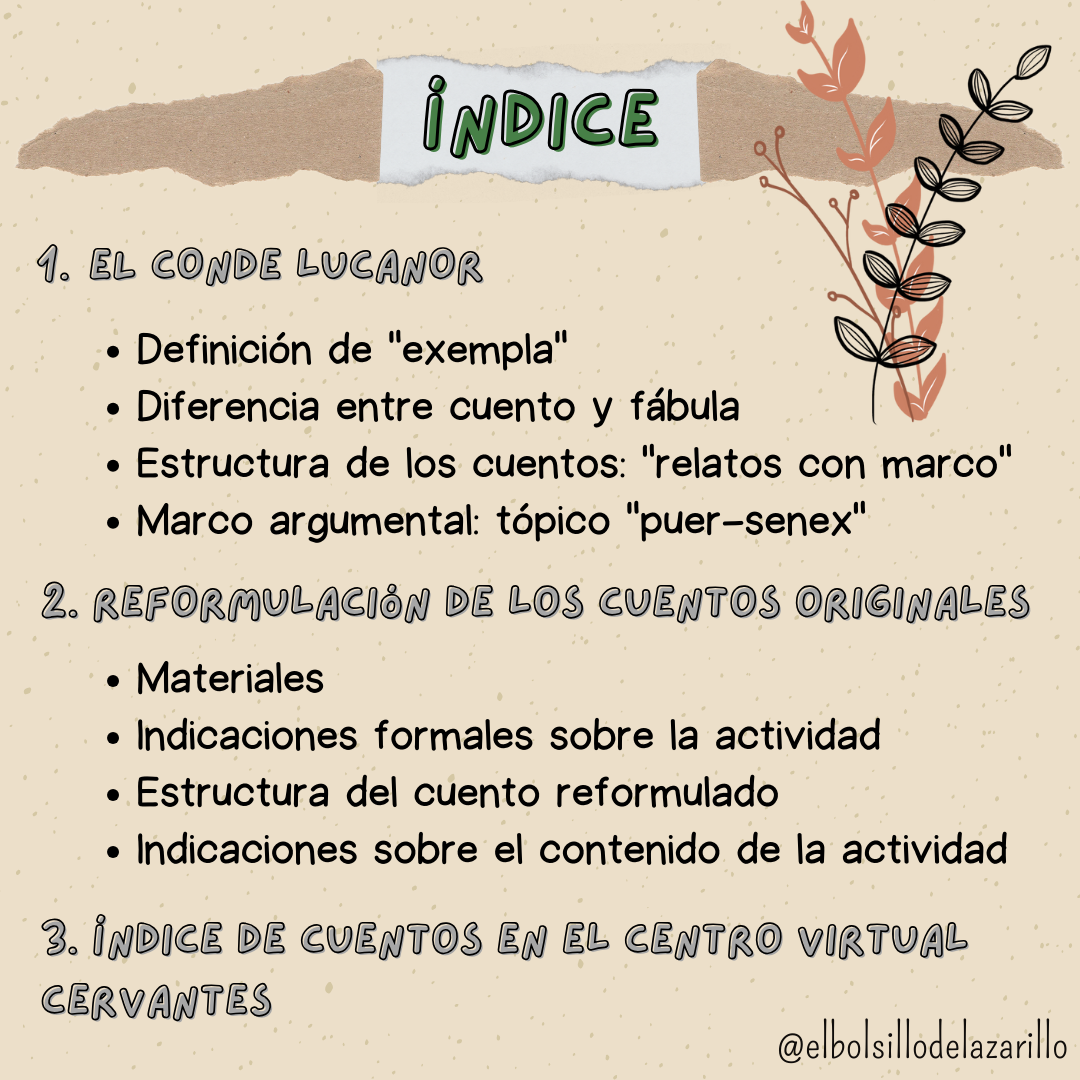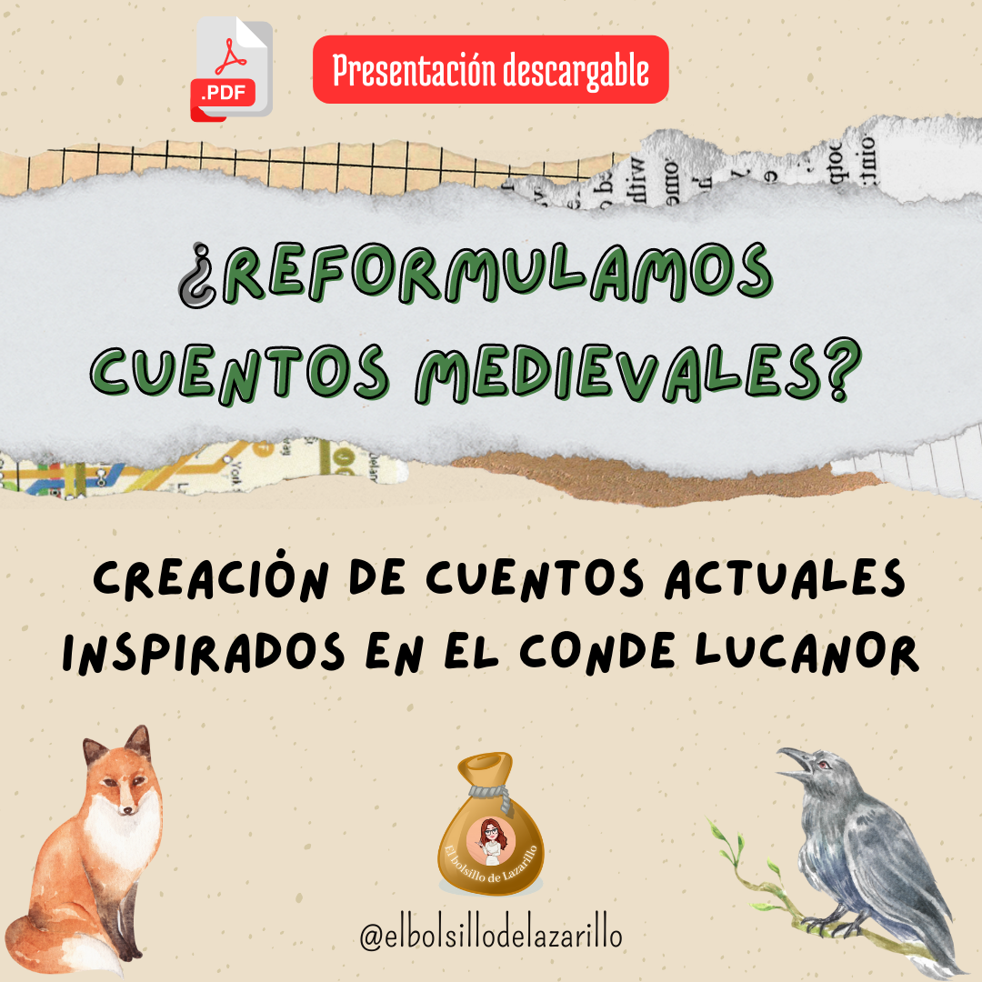 ¡Hola, lazarillos y lazarillas! A petición vuestra, comparto con vosotros/as la actividad que estamos llevando a cabo en 3.º ESO. Se trata de hacer una reformulación moderna de los cuentos de El conde Lucanor a partir de sus moralejas.