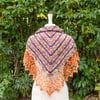 Nothing sets my heart on fire quite like a gorgeous crocheted shawl! The Heart of Fire Shawl is one of my favorite shawl styles, featuring a cozily textured body with bold contrast stripes and an exquisite lace border. It’s endlessly fun to work up - the color changes keep it interesting without requiring focus or counting, and the colors are carried up the side so there’s no extra ends to weave in - and the heart shape makes it easy to wear and style.