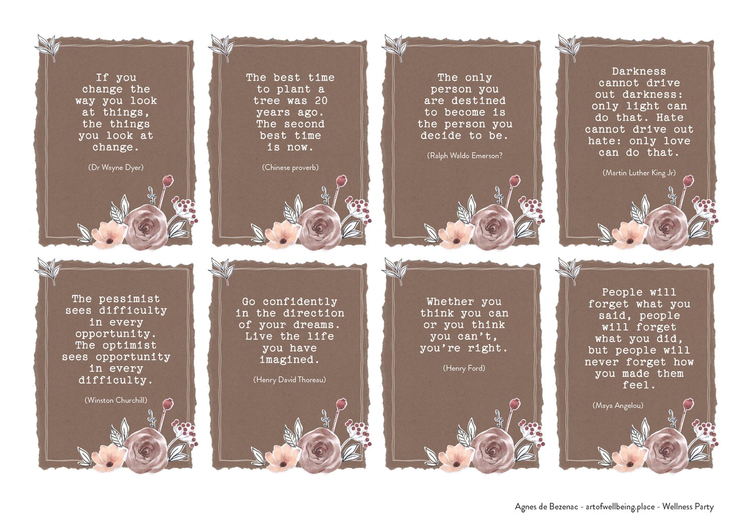 A Wellness Party game for bonding with your lady friends on all types of topics. A way to build deep connections and lasting friendships, all the while sharing a little piece of your mind and heart, using quotes and picture cards.