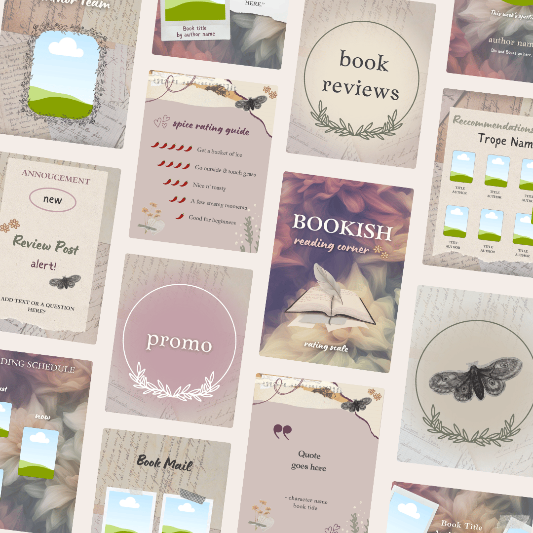 implify bookstagram with 86 editable canva templates! This bundle includes 4:5 posts, videos for reels or tiktok, stories, and highlight covers. Perfect for readers, authors, publishers, book bloggers, reviewers, booksellers, and book influencers, these templates make it effortless to boost your reading list, showcase your books, and engage more readers. The aesthetic design creates a cohesive look with tons of content ideas that will save you hours of time and allow you to post consistently.