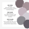 + Detailed Hex Codes, RGB, and CMYK values for each color