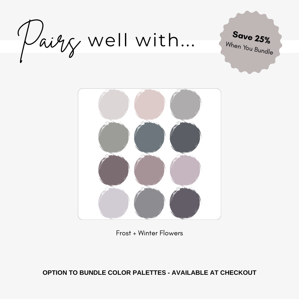 Bring dramatic depth to your brand with our soft purple Winter Flowers Color Palette, designed to infuse your business branding with the subtle elegance of lavender and lilac. This digital template includes a collection of moody winter colors and trending shades, perfect for creating a cohesive and sophisticated look for your logo and brand design. Each element has been carefully curated to ensure seamless integration, with Hex Codes, RGB, and CMYK values provided for precise color matching. Elevate your visual identity and stand out in the marketplace with this versatile and chic color palette. Perfect for designers and entrepreneurs looking to refresh their brand with timeless yet modern hues. Download now and start creating your captivating brand story today!