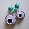 Each adorable alien fits perfectly inside its matching flying saucer. These mini makes work up fast using basic stitches and minimal yarn—perfect for stashbusting! The smaller alien is just the right size for a keychain or bag charm, while the UFOs double as tiny spaceships for imaginative play.