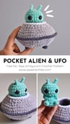 Crochet your own Pocket Alien and UFO set with this quick, easy, no-sew amigurumi pattern pack! This fun and beginner-friendly project includes instructions for two sizes: