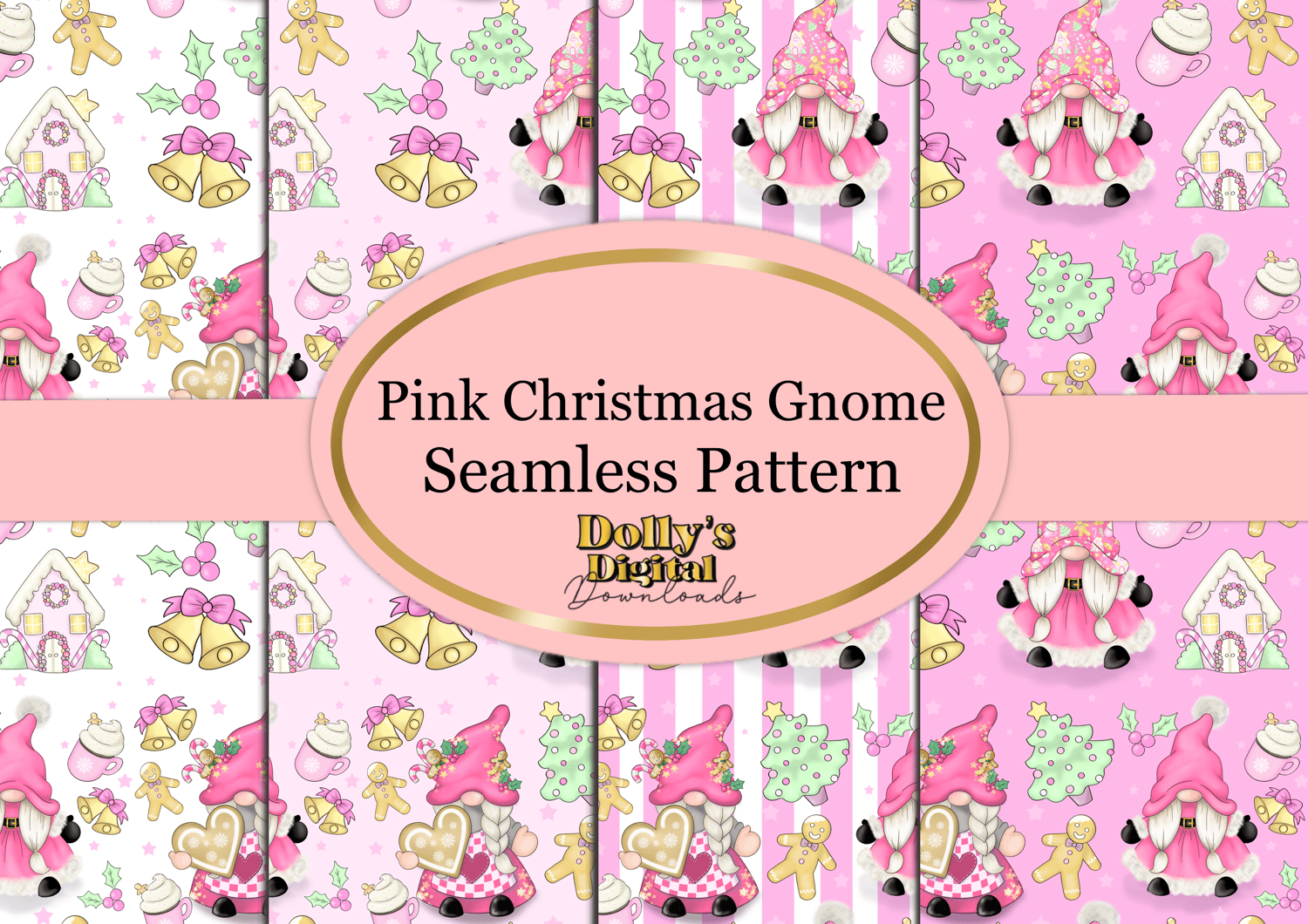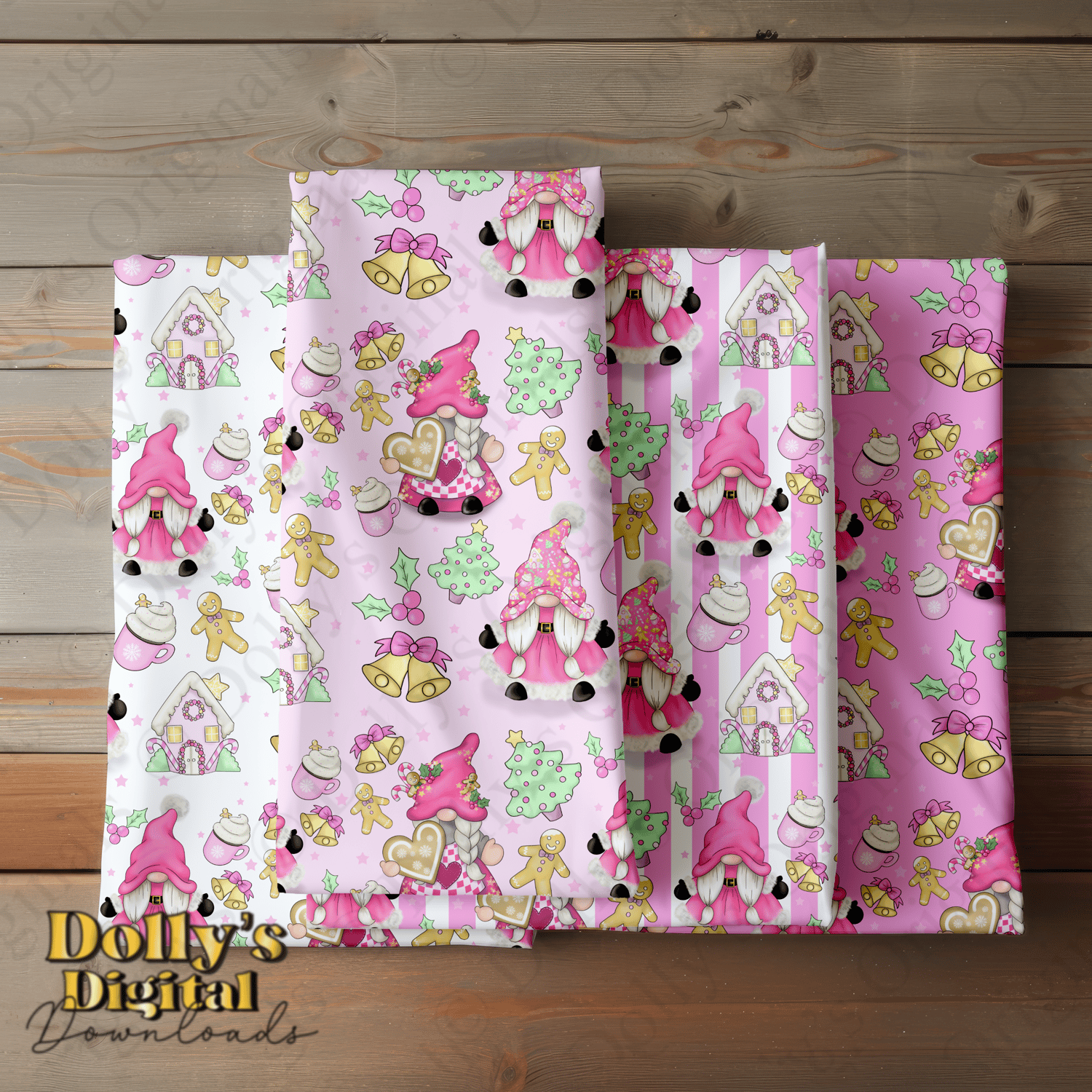 Includes the Four Pink Christmas Gnome Seamless Patterns PNG tiles (4 PNG’s)