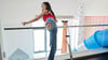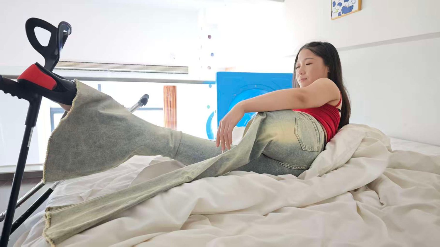 Naomi Sak an Amputee girl changing clothes and wearing stockings