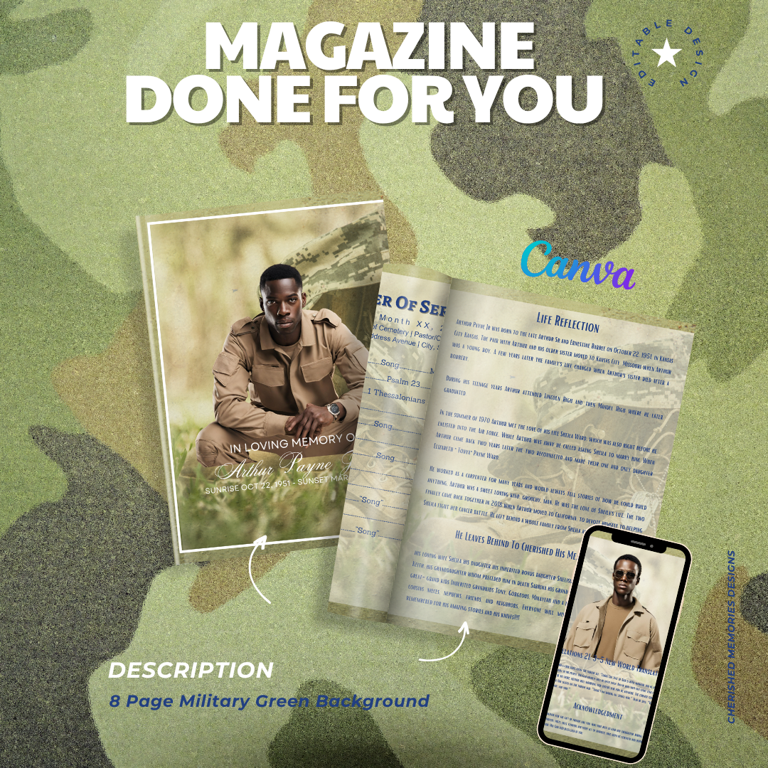 Army Green Military Tribute Memorial Program (DFY Design Service)