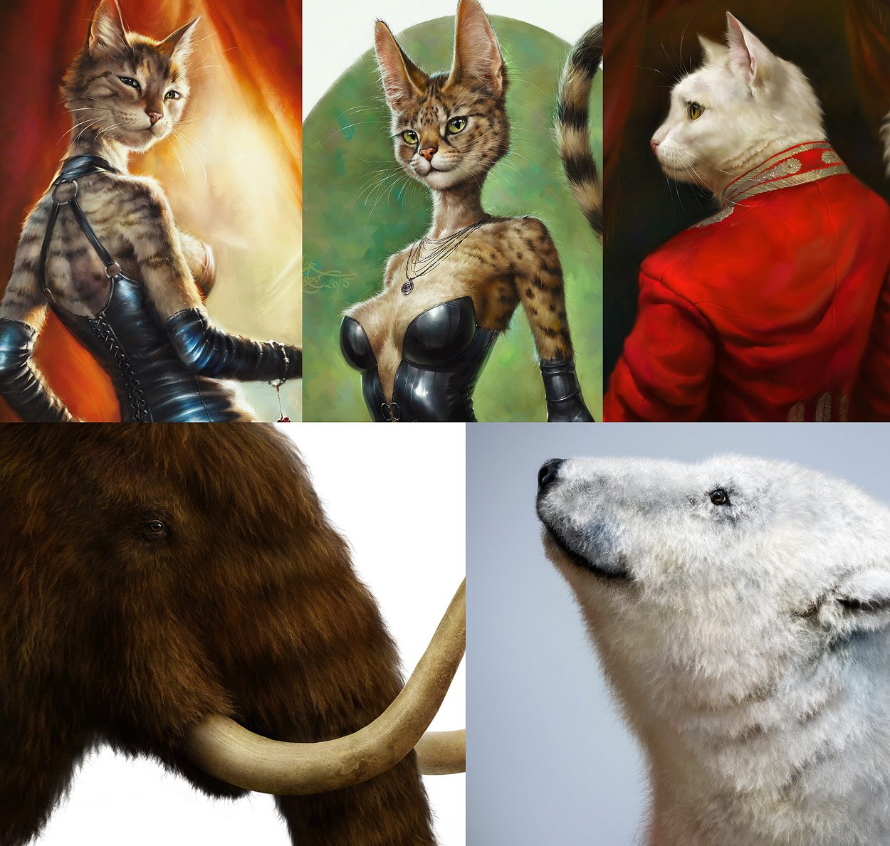 • As in painting or drawing at all, I'd recommend proceeding from common, main shapes to partial ones and details: firstly, specify the main big volume, lights, and darks, then put non-detailed fur strands using matching brushes, and then make the detailing with detailed fur brushes.
