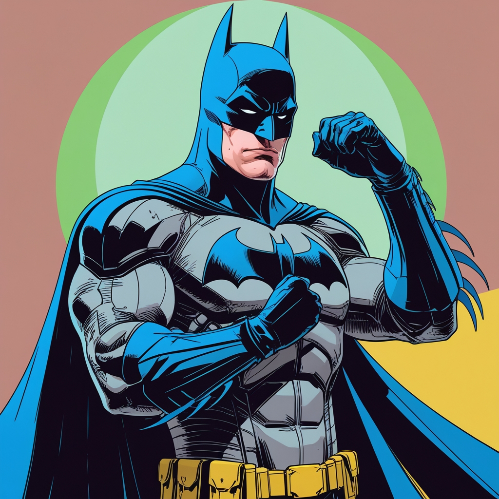 midshot, cel-shading style, centered image, ultra detailed illustration of Batman posing, (tetradic colors), inkpunk, ink lines, strong outlines, art by MSchiffer, bold traces, unframed, high contrast, (cel-shaded:1.1), vector, 32k resolution, best quality, flat colors, flat lights