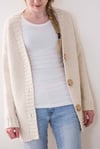 This is the cardigan to live in during the cold months. It’s oversized and cozy with the beautiful texture adding even more warmth and softness to it. Shaping on shoulders and underarms makes sure the cardigan also fits well and the extra long sleeves keep your hands warm.