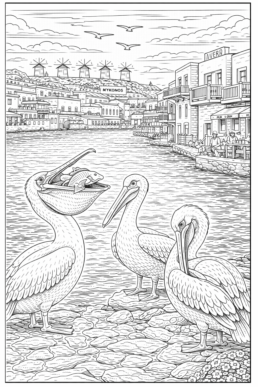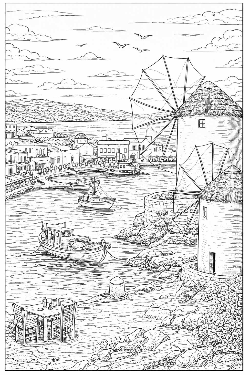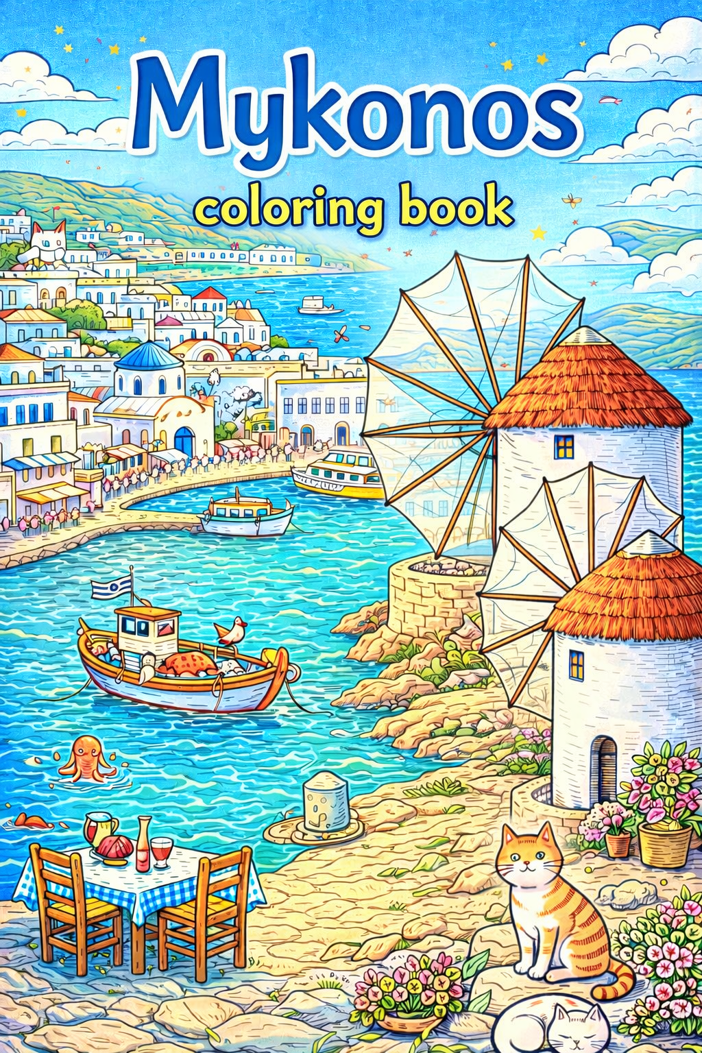 Mykonos, 76 designs, coloring ebook, digital printable product, instantly download