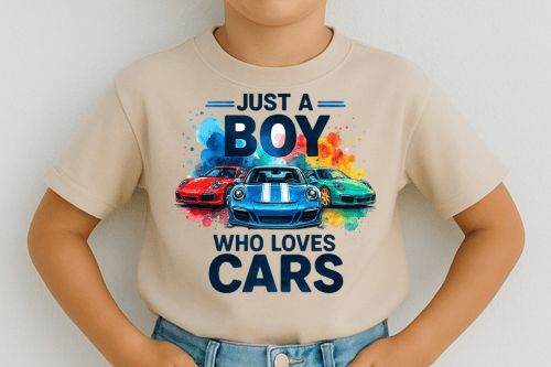 - Kids’ Clothing: Personalize t-shirts, hoodies, or pajamas for boys who love cars.