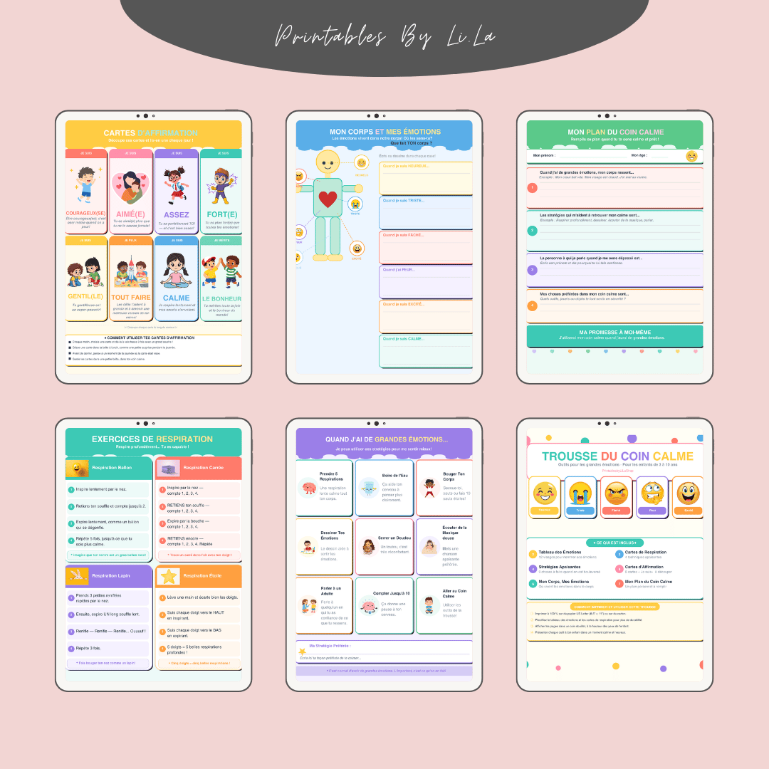 Trousse du Coin Calme Imprimable | Français | Outils Régulation Émotions Enfants | Tableau Émotions, Respiration, Affirmations 3-10 ans